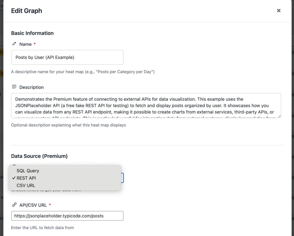 Heat Map Graph lets you create interactive charts from your WordPress database or external APIs. Start with heat maps in the free version, or upgrade to unlock bar charts, pie charts, and line graphs.You can visualize: